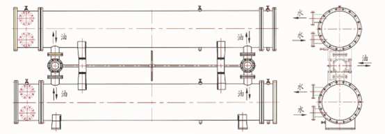 管殼式換熱器采用雙聯(lián)結(jié)構(gòu),由兩只相同面積的冷油器和三通閥裝置構(gòu)成,一只工作,一只備用,每個冷卻器能承擔整個系統(tǒng)的冷卻負荷,管板一頭固定,一頭浮動、可拆卸的管束和水室箱蓋,便于運行過程中清洗、檢查和維修。管殼式換熱器材質(zhì),根據(jù)使用場所、水系統(tǒng)條件可有多種選擇。